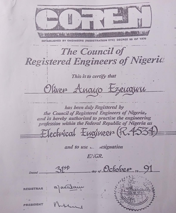 COUNCIL OF REGISTERED ENGINEERS OF NIGERIA (COREN)